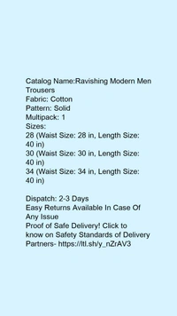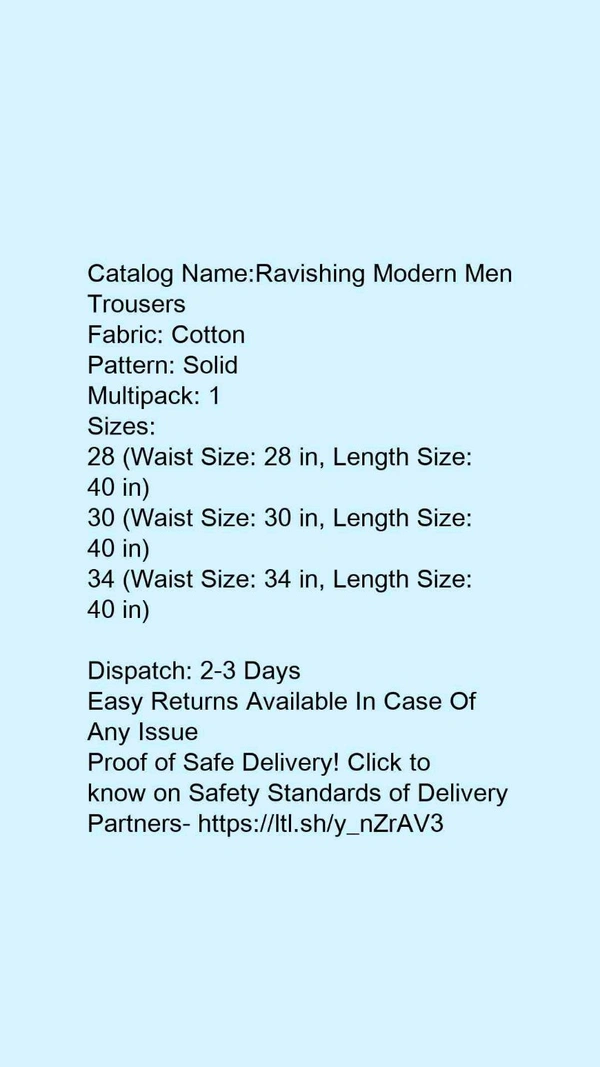Catalog Name:*Ravishing Modern Men Trousers*Fabric: CottonPattern: SolidMultipack: 1