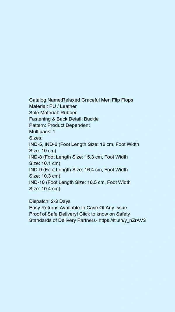 Catalog Name:*Relaxed Graceful Men Flip Flops*Material: PU / LeatherSole Material: RubberFastening & Back Detail: BucklePattern: Product DependentMultipack: 1