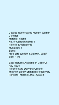 Catalog Name:*Styles Modern Women Clutches*Material: FabricNo. of Compartments: 1Pattern: EmbroideredMultipack: 1