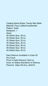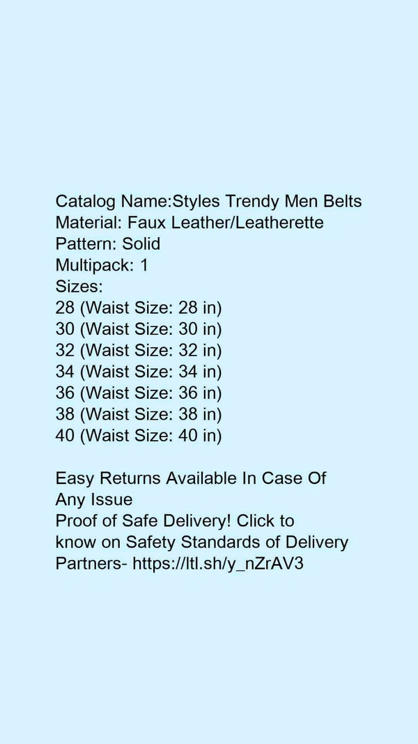 Catalog Name:*Styles Trendy Men Belts*Material: Faux Leather/LeatherettePattern: SolidMultipack: 1