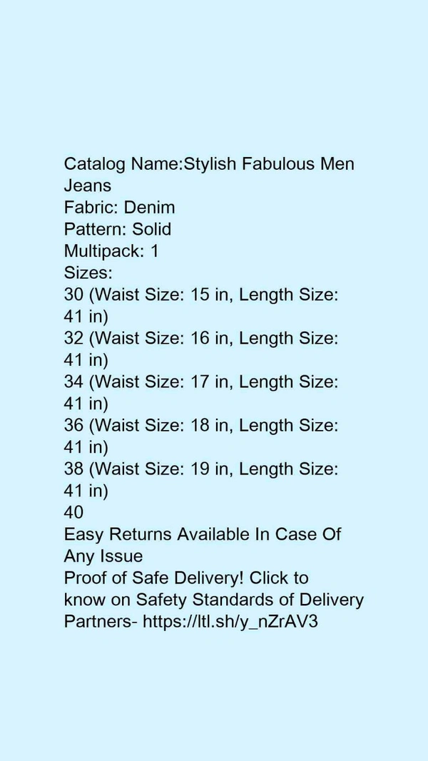 Catalog Name:*Stylish Fabulous Men Jeans*Fabric:,🥰❤️ DenimPattern: SolidMultipack: 1