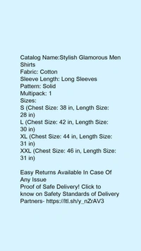 Catalog Name:*Stylish Glamorous Men Shirts*Fabric: CottonSleeve Length: Long SleevesPattern: SolidMultipack: 1
