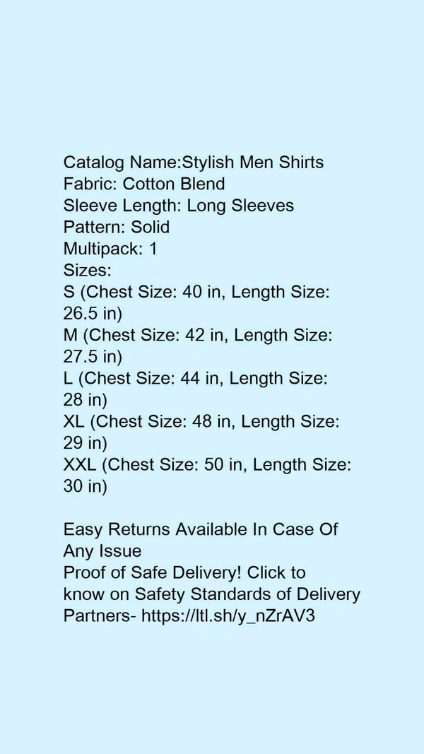 Catalog Name:*Stylish Men Shirts*Fabric: Cotton BlendSleeve Length: Long SleevesPattern: SolidMultipack: 1