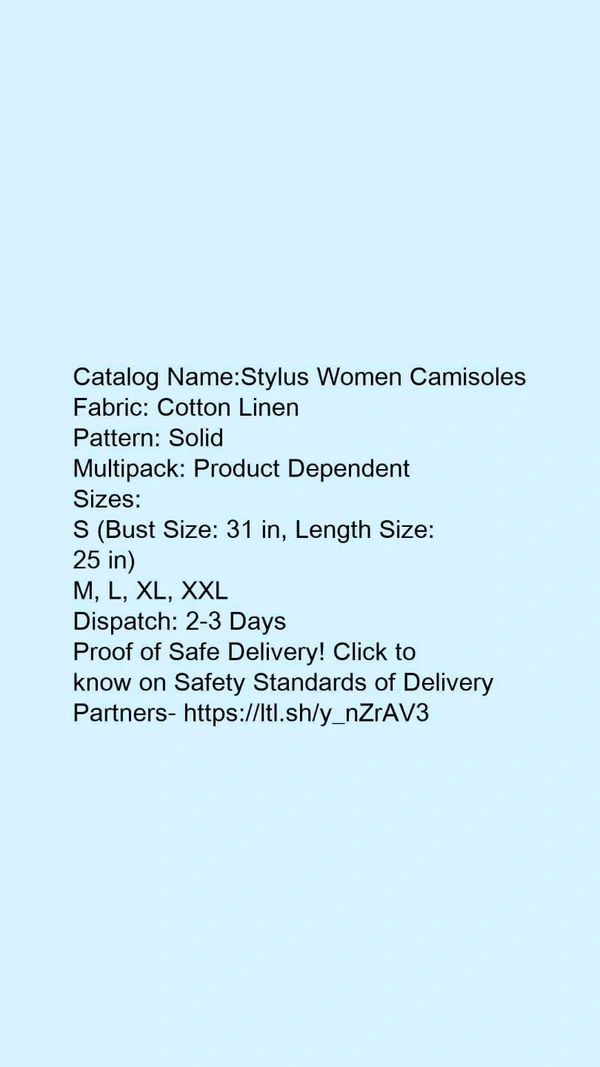 Catalog Name:*Stylus Women Camisoles*Fabric: Cotton LinenPattern: SolidMultipack: Product Dependent