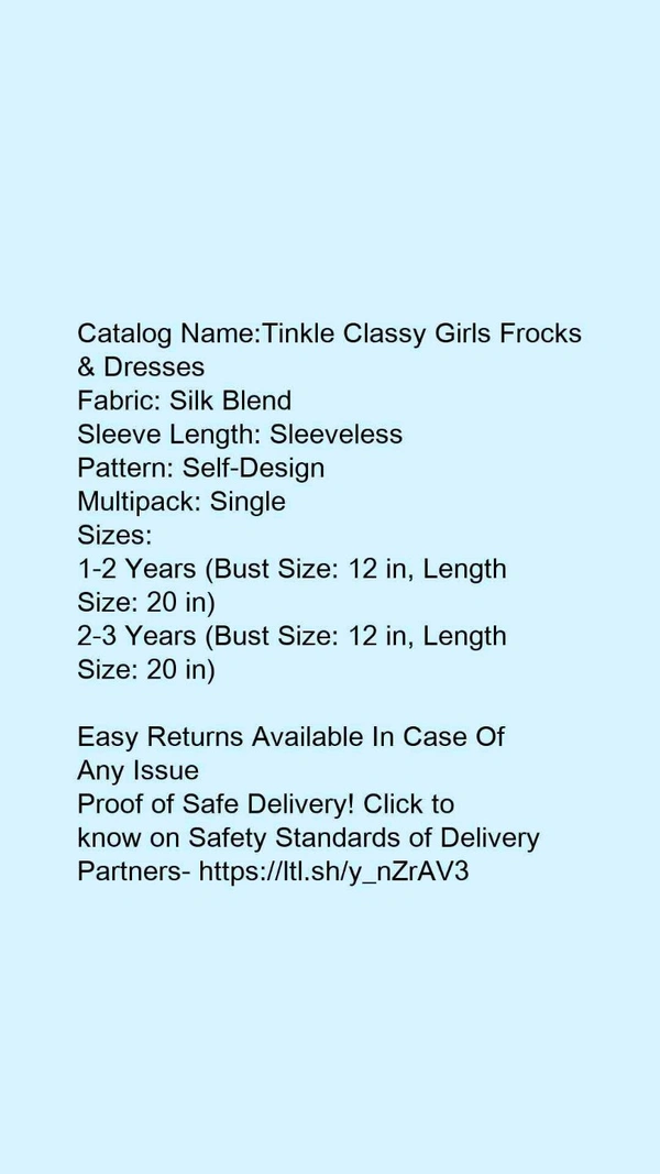 Catalog Name:*Tinkle Classy Girls Frocks & Dresses*Fabric: Silk BlendSleeve Length: SleevelessPattern: Self-DesignMultipack: Single
