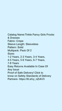 Catalog Name:*Tinkle Fancy Girls Frocks & Dresses*Fabric: CrepeSleeve Length: SleevelessPattern: SolidMultipack: Pack Of 2