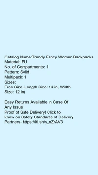 Catalog Name:*Trendy Fancy Women Backpacks*Material: PUNo. of Compartments: 1Pattern: SolidMultipack: