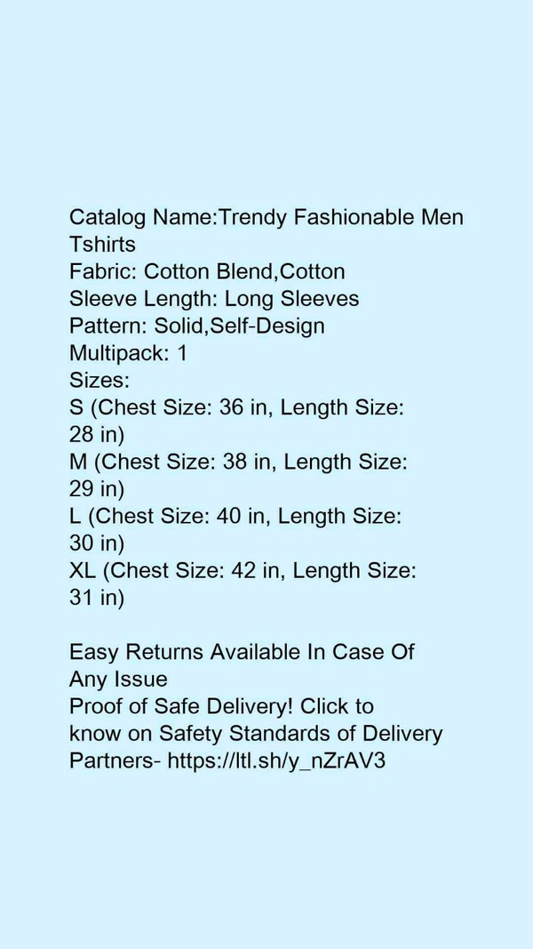 Catalog Name:*Trendy Fashionable Men Tshirts*Fabric: Cotton Blend,CottonSleeve Length: Long SleevesPattern: Solid,Self-DesignMultipack: 1