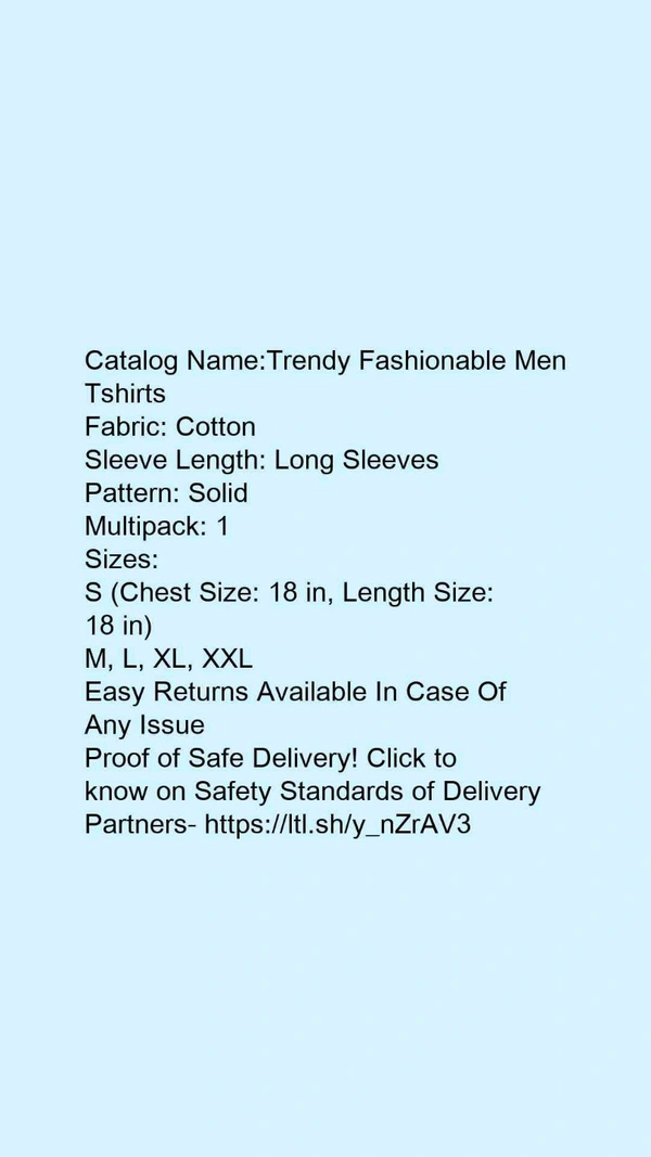 Catalog Name:*Trendy Fashionable Men Tshirts*Fabric: CottonSleeve Length: Long SleevesPattern: SolidMultipack: 1