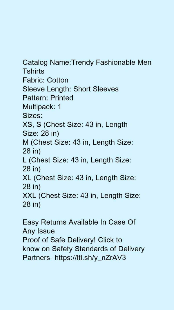 Catalog Name:*Trendy Fashionable Men Tshirts*Fabric: CottonSleeve Length: Short SleevesPattern: PrintedMultipack: 1