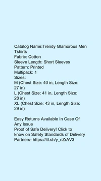 Catalog Name:*Trendy Glamorous Men Tshirts*Fabric: CottonSleeve Length: Short SleevesPattern: PrintedMultipack: 1