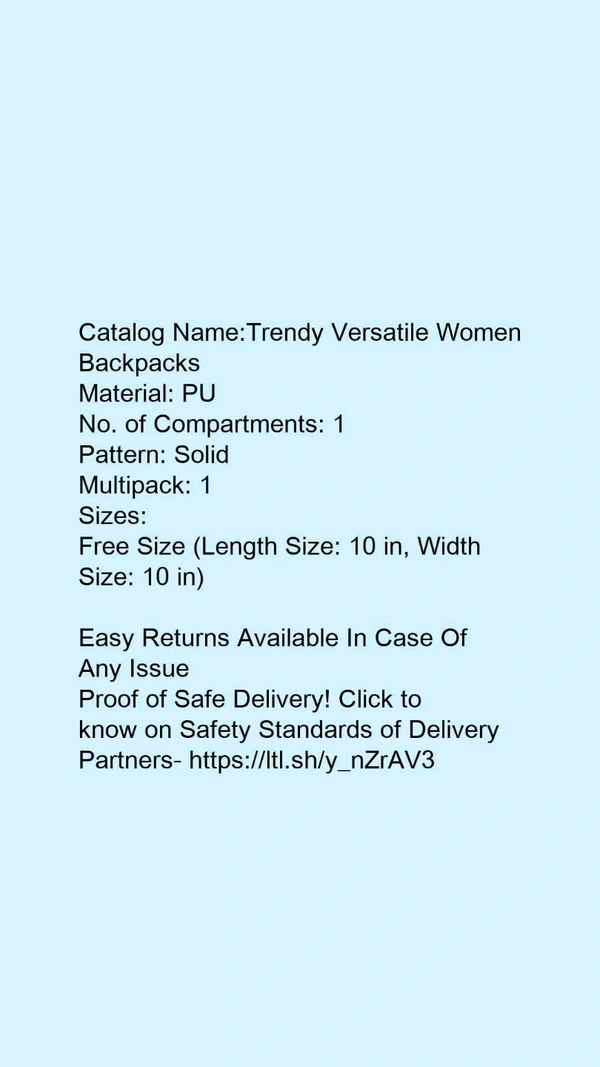 Catalog Name:*Trendy Versatile Women Backpacks*Material: PUNo. of Compartments: 1Pattern: SolidMultipack: 1