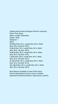 Catalog Name:*Urbane Designer Women Jumpsuits*Fabric: Poly CrepeSleeve Length: SleevelessPattern: SolidMultipack: 1