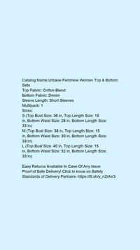 Catalog Name:*Urbane Feminine Women Top & Bottom Sets*Top Fabric: Cotton BlendBottom Fabric: DenimSleeve Length: Short SleevesMultipack: 1