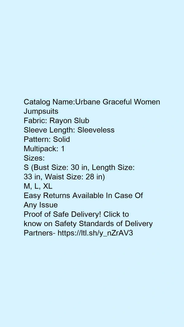 Catalog Name:*Urbane Graceful Women Jumpsuits*Fabric: Rayon SlubSleeve Length: SleevelessPattern: SolidMultipack: 1