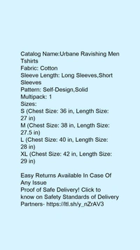 Catalog Name:*Urbane Ravishing Men Tshirts*Fabric: CottonSleeve Length: Long Sleeves,Short SleevesPattern: Self-Design,SolidMultipack: 1