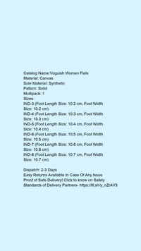 Catalog Name:*Voguish Women Flats*Material: CanvasSole Material: SyntheticPattern: SolidMultipack: 1