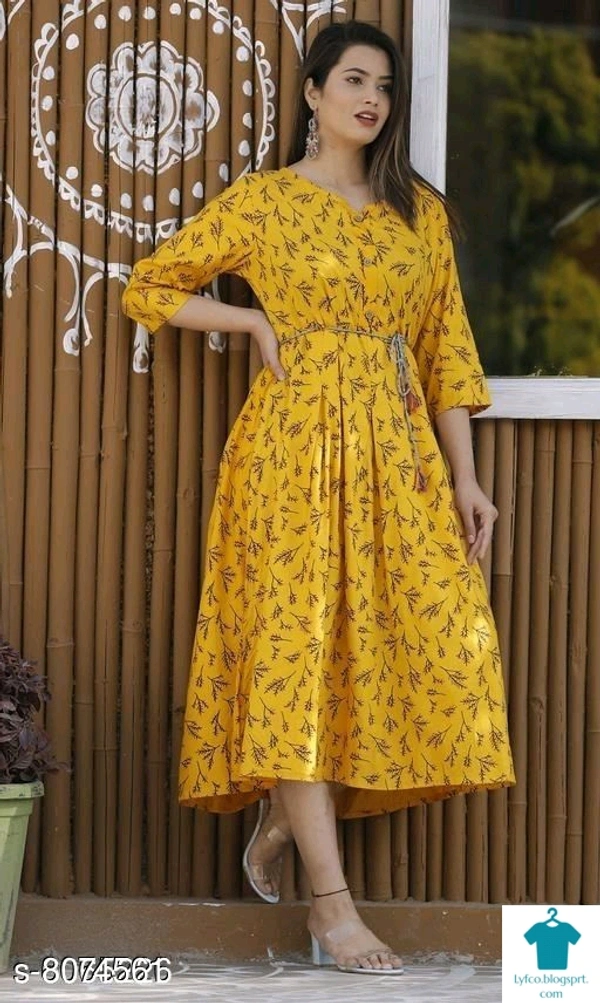 Catalog Name:*Women Rayon Maternity Printed Yellow Kurti*Fabric: RayonSleeve Length: Three-Quarter SleevesStitch Type: StitchedFit/ Shape: MaternityPattern: PrintedCombo of: Single