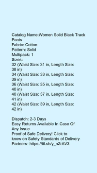 Catalog Name:*Women Solid Black Track Pants*Fabric: CottonPattern: SolidMultipack: 1