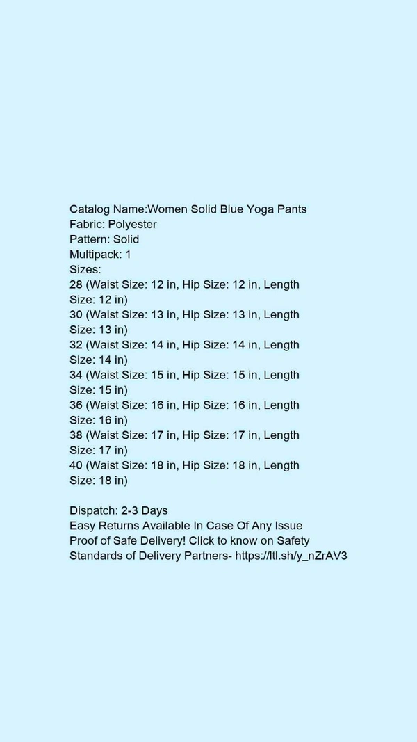 Catalog Name:*Women Solid Blue Yoga Pants*Fabric: PolyesterPattern: SolidMultipack: 1