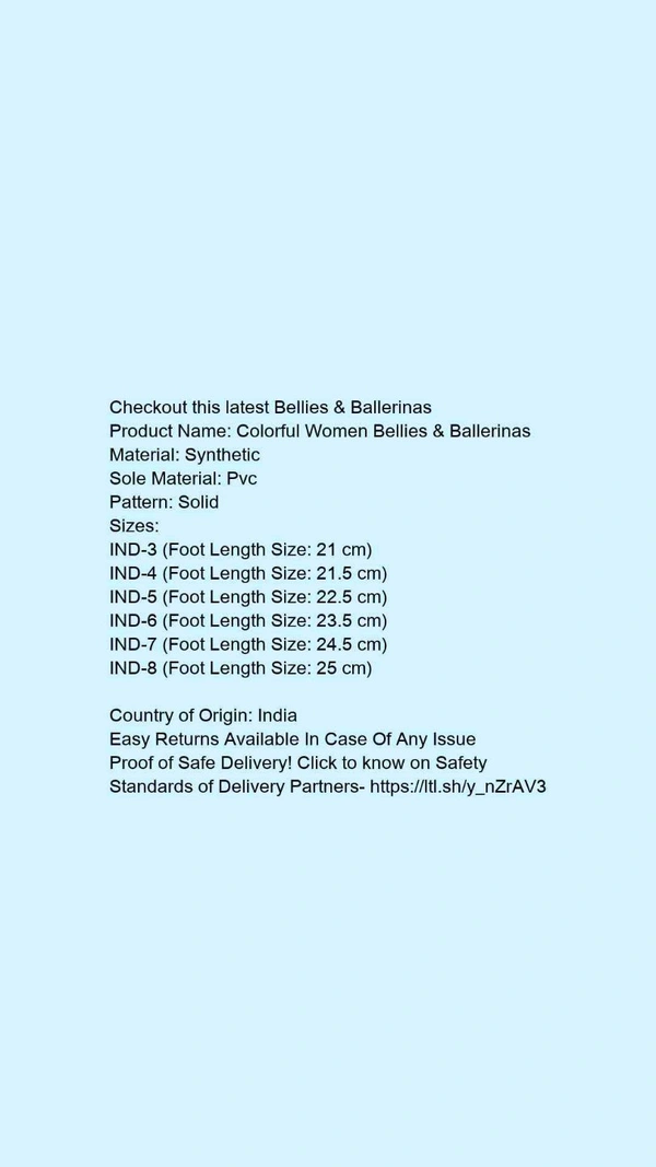 Checkout this latest Bellies & BallerinasProduct Name: *Colorful Women Bellies & Ballerinas*Material: SyntheticSole Material: TprPattern: SolidMultipack: 1