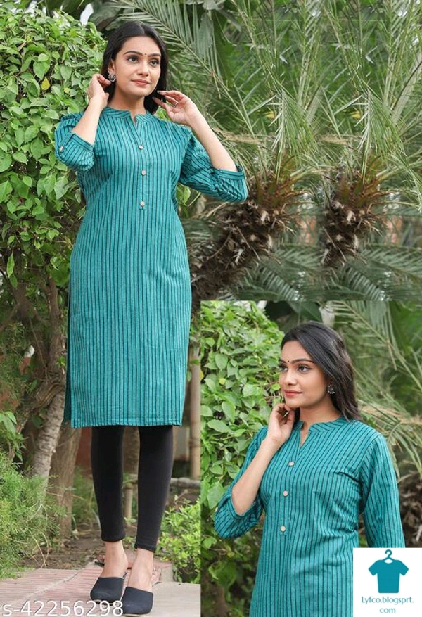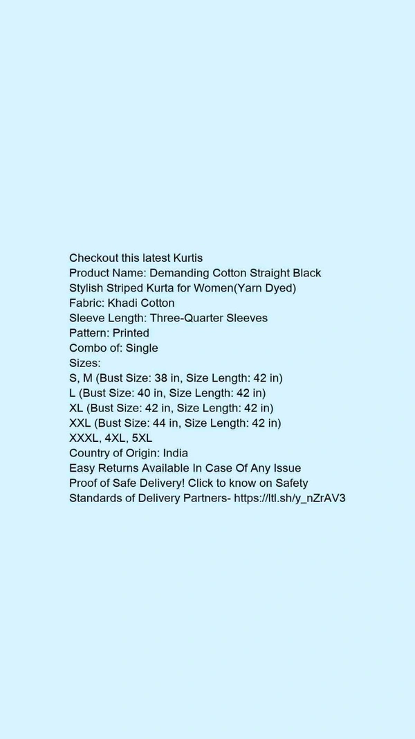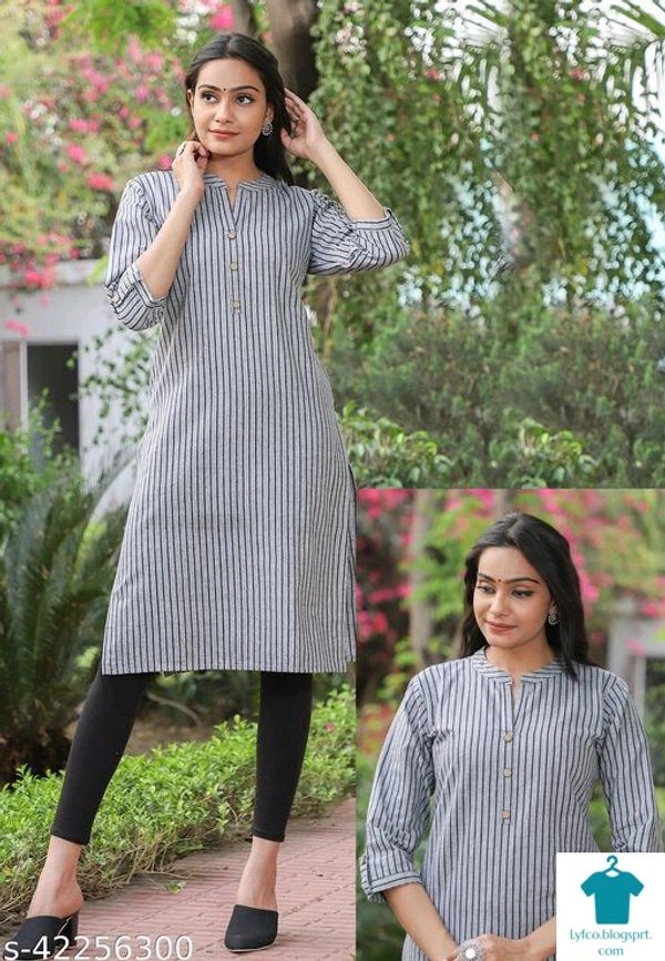 ☀️Myra Fashionable KurtisFabric: Khadi CottonSleeve Length: Three-Quarter SleevesPattern: StripedCombo of: Single