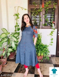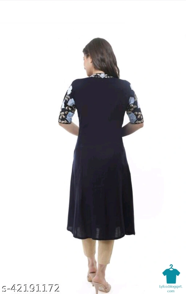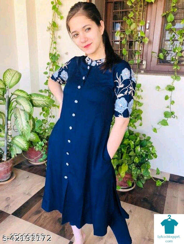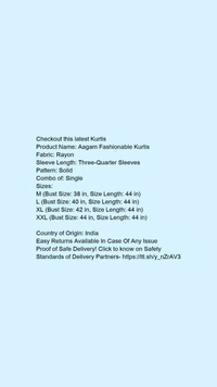 Product Name: *Aagam Fashionable Kurtis*Fabric: RayonSleeve Length: Three-Quarter SleevesPattern: SolidCombo of: Single