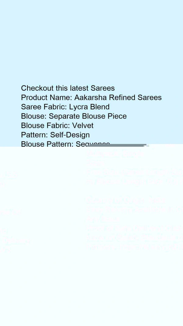 Product Name: *Abhisarika Fashionable Sarees*Saree Fabric: Lycra BlendBlouse: Separate Blouse PieceBlouse Fabric: VelvetPattern: Self-DesignBlouse Pattern: SequenceMultipack: Single