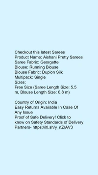 Product Name: *Aishani Pretty Sarees*Saree Fabric: GeorgetteBlouse: Running BlouseBlouse Fabric: Dupion SilkMultipack: Single