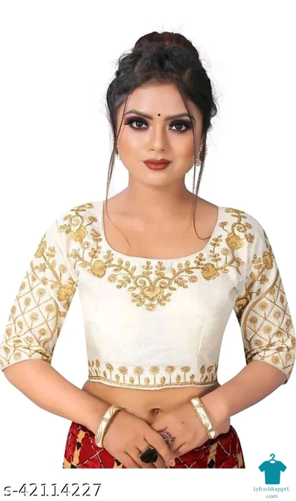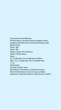 Product Name: *Amrutam Fashion Designer Studio Designer Silk White Color Embroidery Ready made Blouse Piece *Fabric: SilkFabric: SilkSleeve Length: Short SleevesPattern: Embroidered