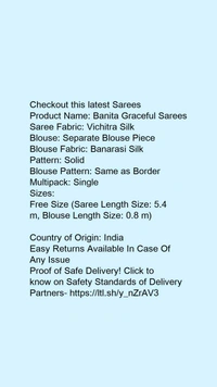 Product Name: *Banita Graceful Sarees*Saree Fabric: Vichitra SilkBlouse: Separate Blouse PieceBlouse Fabric: Banarasi SilkPattern: SolidBlouse Pattern: Same as BorderMultipack: Single