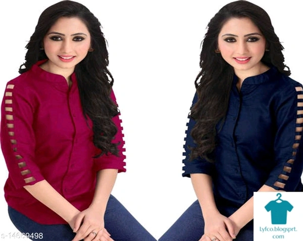 Product Name: *Casual Royal Side Cut Solid Women Top Pack 2*Fabric: RayonSleeve Length: Three-Quarter SleevesPattern: SolidMultipack: 2