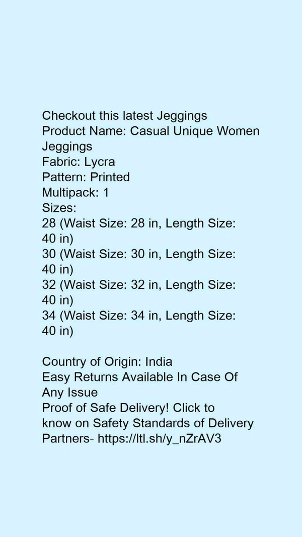 Product Name: *Casual Unique Women Jeggings*Fabric: LycraPattern: PrintedMultipack: 1