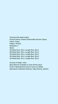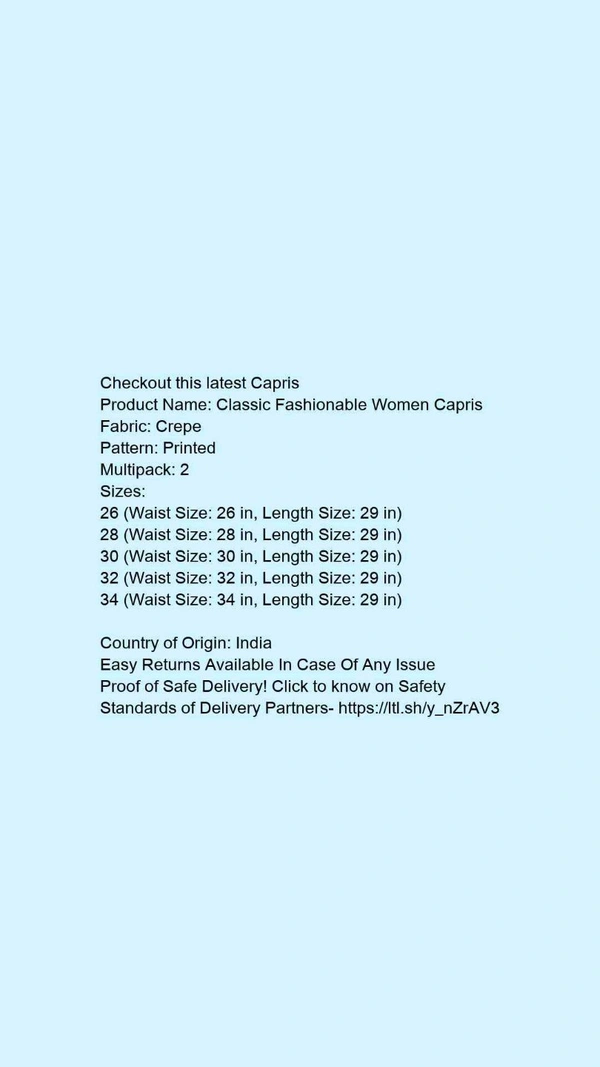 Product Name: *Classic Fashionable Women Capris*Fabric: CrepePattern: PrintedMultipack: 2