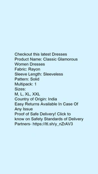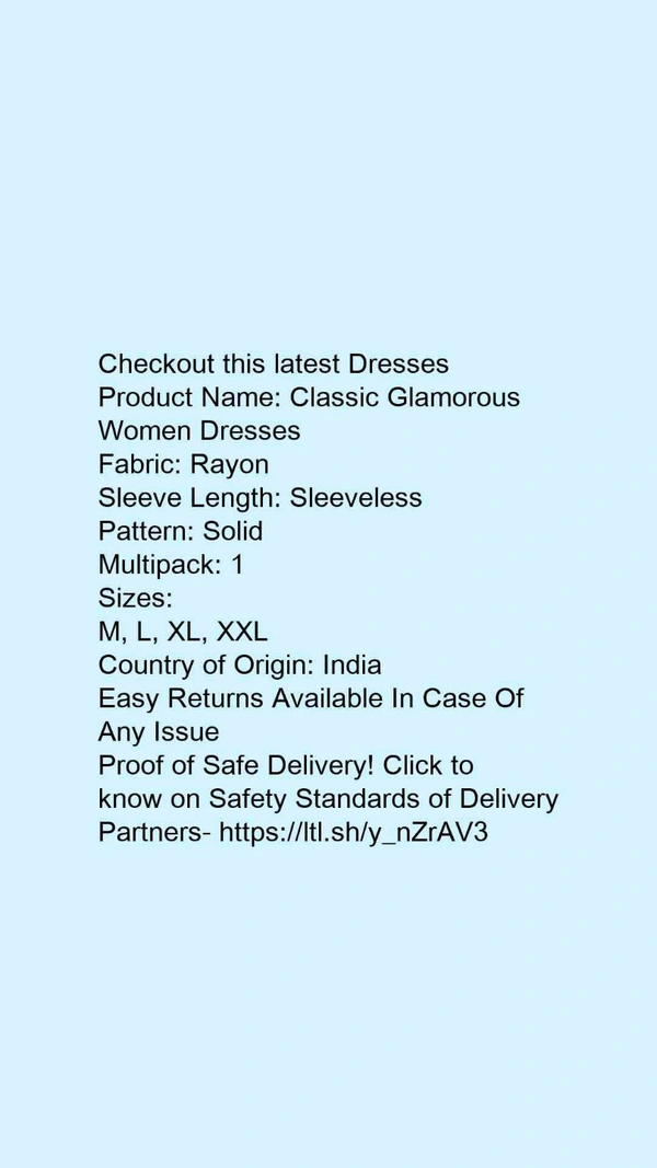 Product Name: *Classic Glamorous Women Dresses*Fabric: RayonSleeve Length: SleevelessPattern: SolidMultipack: 1