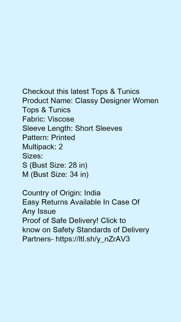 Product Name: *Classy Designer Women Tops & Tunics*Fabric: ViscoseSleeve Length: Short SleevesPattern: PrintedMultipack: 2
