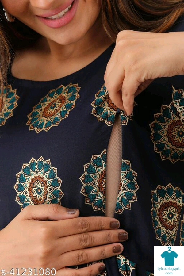 Product Name: *Classy Feeding Kurtis *Fabric: RayonBottomwear Fabric: No BottomwearBottom Type: No BottomwearSleeve Length: Three-Quarter SleevesStitch Type: StitchedFit/ Shape: MaternityPattern: PrintedCombo of: Single