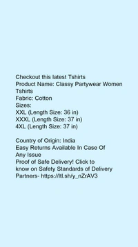 Product Name: *Classy Partywear Women Tshirts *Fabric: Cotton