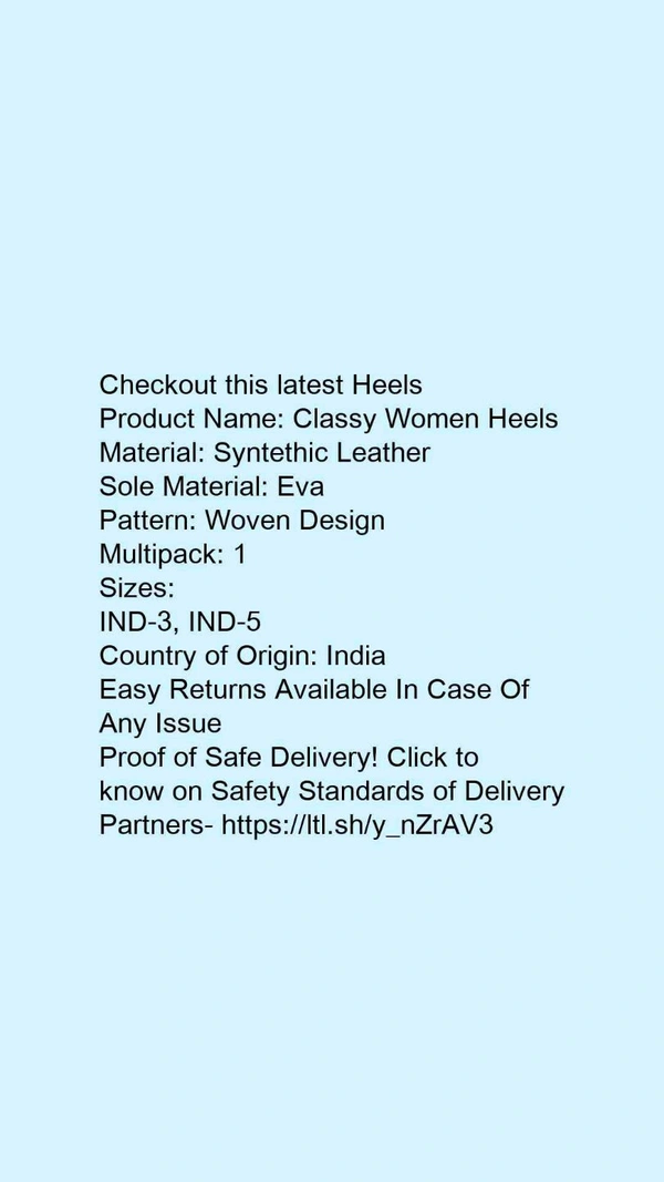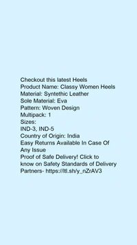 Product Name: *Classy Women Heels*Material: Syntethic LeatherSole Material: EvaPattern: Woven DesignMultipack: 1