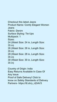 Product Name: *Comfy Elegant Women Jeans*Fabric: DenimSurface Styling: Tie-UpsMultipack: 1
