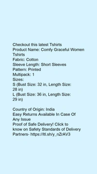Product Name: *Comfy Graceful Women Tshirts *Fabric: CottonSleeve Length: Short SleevesPattern: PrintedMultipack: 1