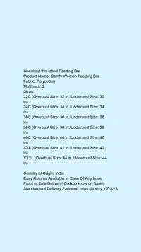 Product Name: *Comfy Women Feeding Bra*Fabric: PolycottonMultipack: 2