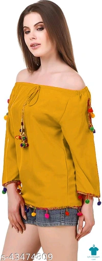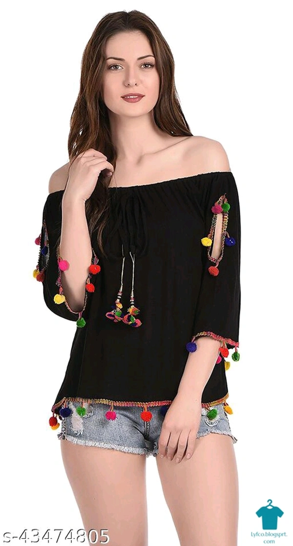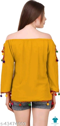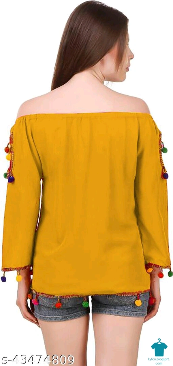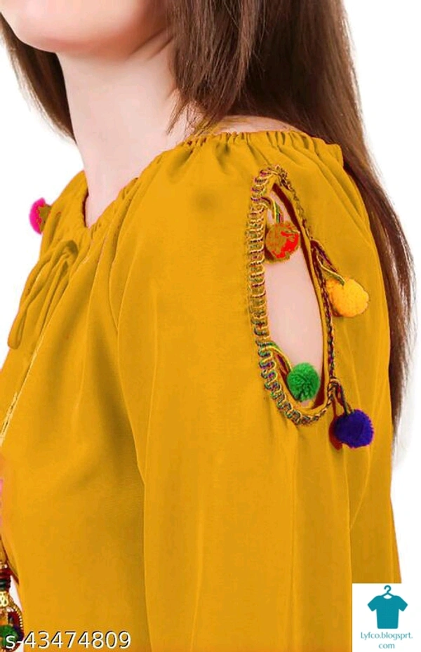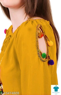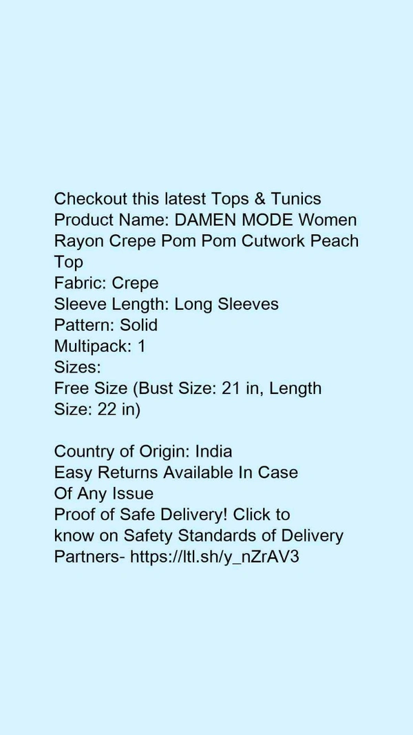 Product Name: *DAMEN MODE Women Rayon Crepe Pom Pom Cutwork Peach Top*Fabric: CrepeSleeve Length: Long SleevesPattern: SolidMultipack: 1