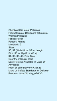 Product Name: *Designer Fashionista Women Palazzos*Fabric: RayonPattern: PrintedMultipack: 2