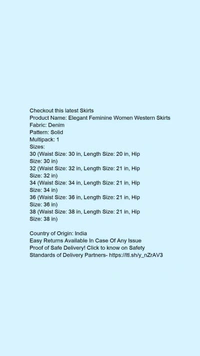 Product Name: *Elegant Feminine Women Western Skirts*Fabric: DenimPattern: SolidMultipack: 1