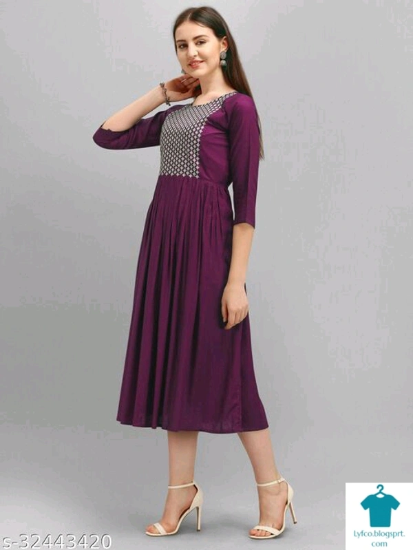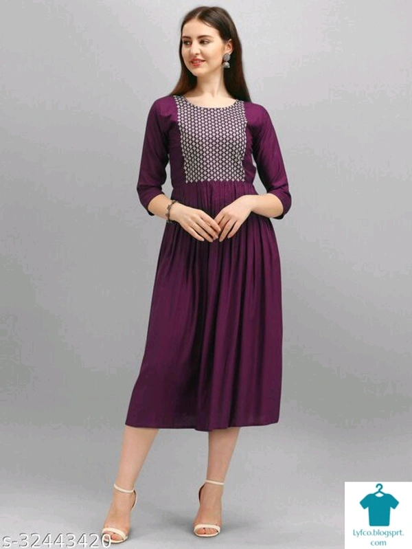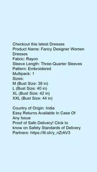 Product Name: *Fancy Designer Women Dresses*Fabric: RayonSleeve Length: Three-Quarter SleevesPattern: EmbroideredMultipack: 1