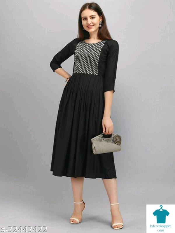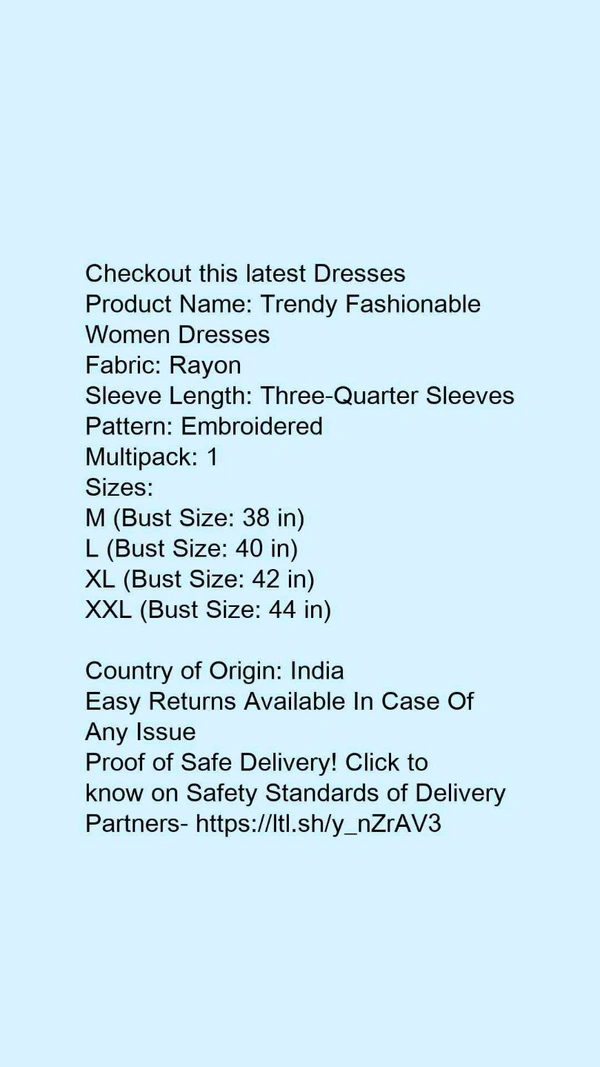 Product Name: *Fancy Designer Women Dresses*Fabric: RayonSleeve Length: Three-Quarter SleevesPattern: EmbroideredMultipack: 1