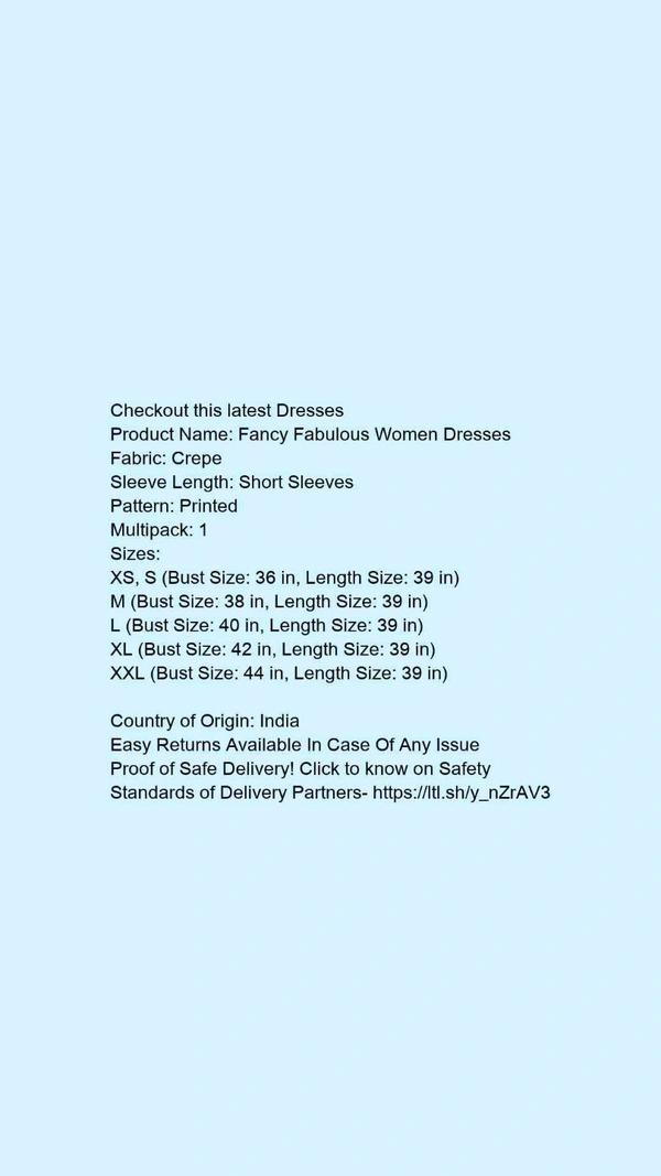 Product Name: *Fancy Fabulous Women Dresses*Fabric: CrepeSleeve Length: Short SleevesPattern: PrintedMultipack: 1