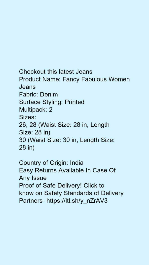 Product Name: *Fancy Fabulous Women Jeans*Fabric: DenimSurface Styling: PrintedMultipack: 2