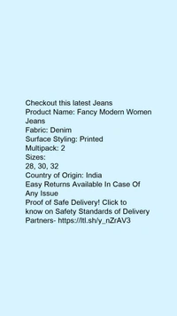 Product Name: *Fancy Modern Women Jeans*Fabric: DenimSurface Styling: PrintedMultipack: 2